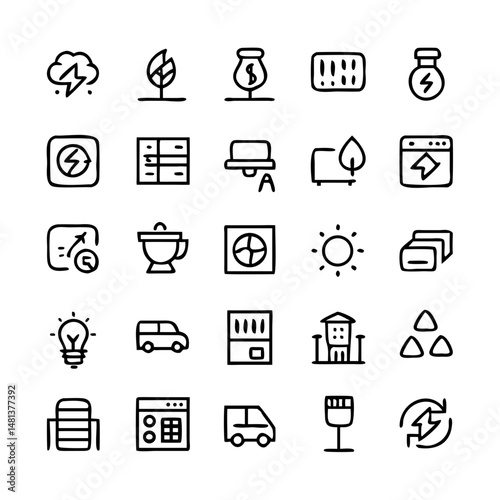 efficiency, outline, eco, stroke, electric, energy, reduction, icon, line, symbol, performance, quality, renewable, save, solar, ecology, transition, set, green, house, reusing, carbon, change, cost, development, earth, electricity, environmental, factory, idea, mobility, money, pollution, power, price, signs, smart, social, treatment, bus, footprint, neutral, people, roof, windmill, air, illustration, light