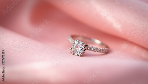 engagement, ring, brilliant, center, stone, soft, pink, satin, fabric, jewellery, romance, love, proposal, decoration, luxury, elegant, wedding, accessory, precious, shine, beauty, artistic, detail, handcraft, gift, glowing, moment, commitment, celebration, timeless, design, stylish, unique, delicate, cherish, sentiment, precious metal, sparkle, romantic, intimate, arrangement
