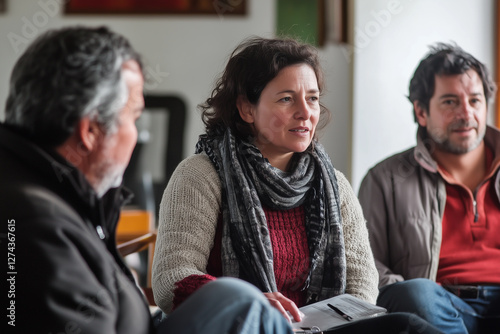 conversation, friends, cosy, indoor, setting, engagement, warmth, white, connection, discussion, expression, attire, casual attire, interaction, atmosphere, comfort, intimacy, laughter, smile, community, togetherness, social, gathering, people, group, dialogue, sharing, moment, relationship, camaraderie, joy, familiarity, woman