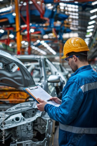 engineer, factory, automobile, assembly, note, observation, industry, manufacturing, production, quality, hard hat, clipboard, machinery, car, engineering, automotive, men at work, inspection, industrial, metal, transport, vehicle, workshop, process, mechanical, quality control, job, professional, efficiency, detailed, precision, technology, steel, workplace, construction, labor, assembly line