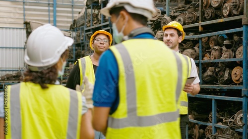 Engineering people are working in heavy industrial plant Engine parts factory ..