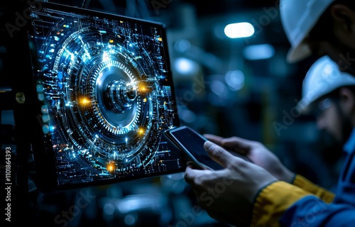 Engineers and teams in the industry, donning safety uniforms, operate lathe grinding machines within a factory setting.