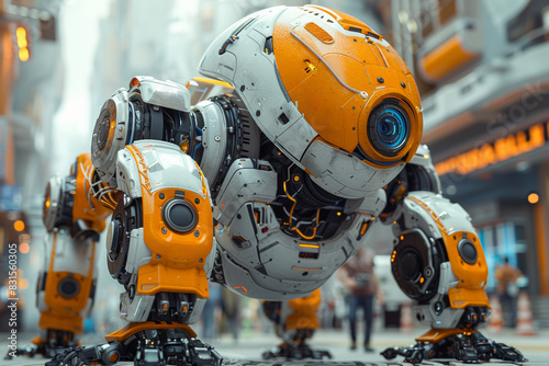 Engineers working on a complex robotic project. Concept of innovation and technological advancement. Generative Ai.
