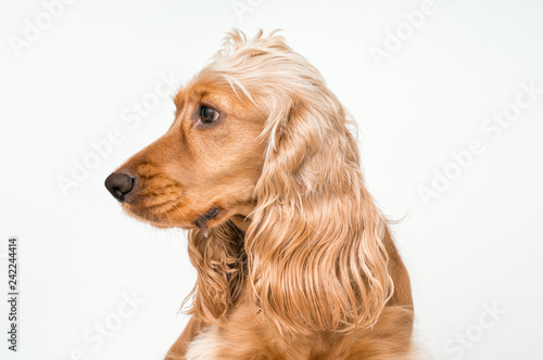 cocker, spaniel, dog, pet, english, white, isolated, animal, background, domestic, 1, canino, breed, cute, shot, mammal, front, portrait, looking, sitting, purebred, vertebrate, beautiful, view, head, fur, creature, furry, pedigree, cut, funny, face, puppy, happy, friends, doggy, standing, hair, closeup