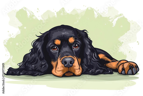 dog, animal, pet, puppy, rottweiler, black, cute, canino, isolated, breed, brown, white, dachshund, pedigree, purebred, mammal, young, setter, gordon, portrait, pet, domestic, doberman, adorable, studio, illustration, green background, lying down, digital artwork
