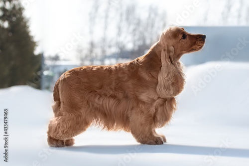 cocker, standing, winter, background, outside, natural, single, walk, coat, frost, long, day, best, siberia, haired, pet, cocker spaniel, fur, gold, domestic, young, 1, cold, park, nature, outdoors, furry, hair, beautiful, white, english, friends, brown, mammal, pet, snow, animal, dog, adorable, cute, purebred, spaniel, pedigree, canino, portrait, breed