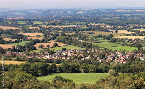 English rural landscape from the Malvern hills in UK, looking over the Village of Colwall in Worcestershire and towards Herfordshire