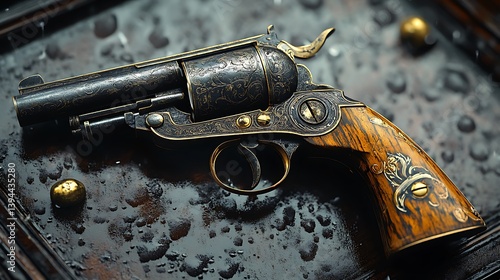 Engraved Antique Gun Fine Metalwork Weapon History Collector Museum Quality Photo