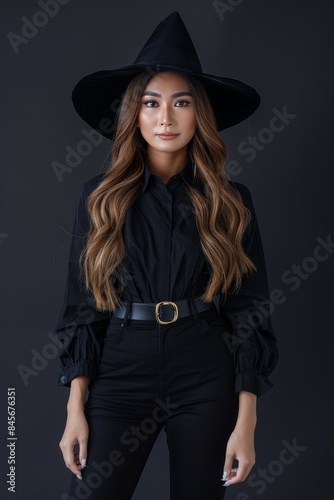 Enigmatic sorceress in mystical forest for fantasy halloween, rich purples and moonlight