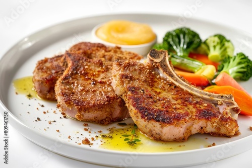 Enticing Air-Fried Pork Chops with Tangy Applesauce and Veggies