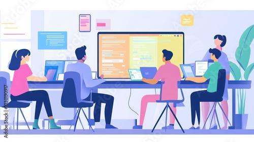 innovation, technology, app, development, startup, teamwork, workspace, laptop, coding, brainstorming, design, creativity, collaboration, modern, digital, project, strategy, inspiration, productivity, business, meeting, online, goal, networking, software, mobile, idea, sharpened, growth, success, communication, professional, planning, agile, entrepreneurship, bustling, cloud