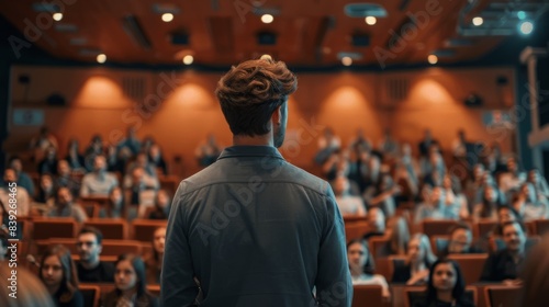 entrepreneurship symposium. Speaker giving a talk at business meeting