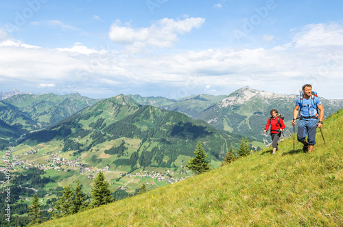 Entspannte Wanderung über dem Kleinwalsertal mit Ausblick auf den Hohen Ifen und das Walmendinger Horn
