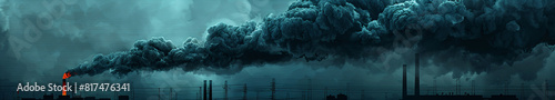 Environmental pollution. Industrial smokestacks emitting black fumes.