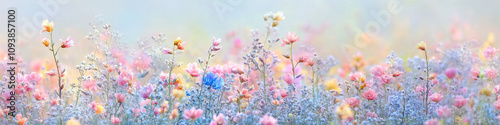 Ephemeral Flowerbed of Color: A field of delicate flowers in soft pastel hues, blowing gently in the breeze.