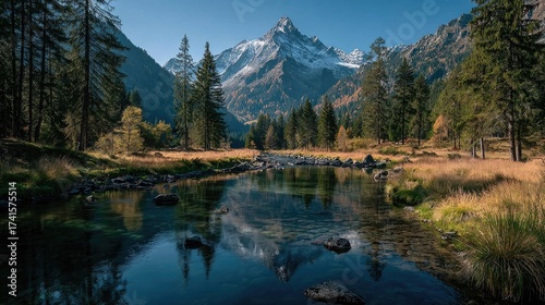 Epic river landscape showcasing majestic mountains reflected in calm waters