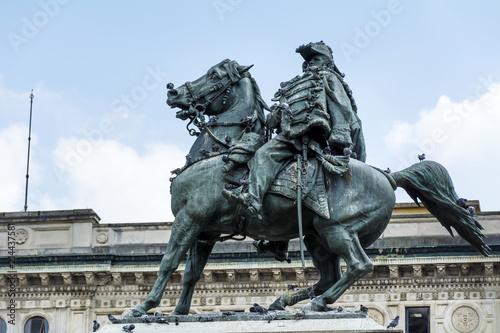 Equestrian Statue of King Vittorio Emanuel II at Piazza del Duomo in Milan,North of Italy