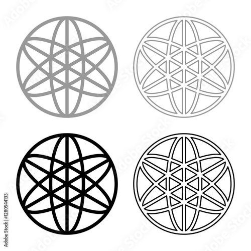 Equilibrium sacred geometry symbol set icon grey black color vector illustration image solid fill outline contour line thin flat style