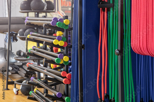 equipment in the gym for a fitness training concept for a healthy lifestyle.