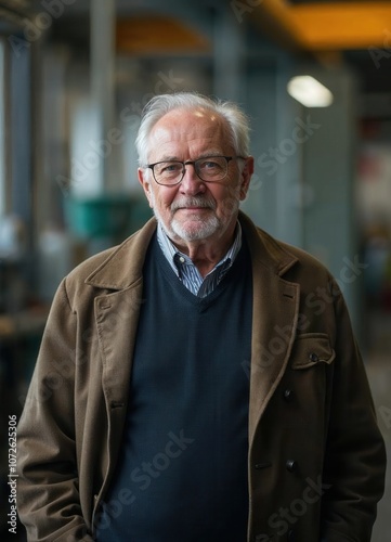 Erfahrener Geschäftsmann Porträt grauer Anzug seriöser Ausdruck reife Ausstrahlung Brille professionelles Auftreten charismatischer Senior Business Profi Vertrauen Weisheit Eleganz klassischer Stil