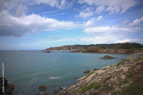 landscape, beach, breton, brittany, france, sea, sand, heaven, ocean, blue, water, summer, coast, nature, cloud, travel, vacation, horizon, wave, shore, panorama, shore