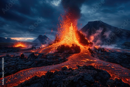 Erupting Volcano. Stunning Volcanic Eruption at Reykjanes Peninsula, Iceland