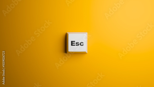 Esc button from keyboard. Key to exit application. Esc button on yellow background. Logout key. Button to pause use of software. Esc logo on keyboard. Exit from software. 3d image