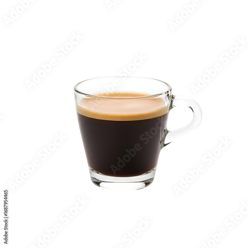 Espresso in Glass: A Rich, Dark Brew with Crema, Perfect for Mornings. Enjoy the Transparent Background.