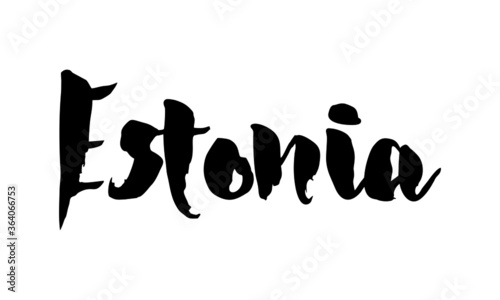 Estonia Country Name Handwritten Text Calligraphy Black Color Text on White Background