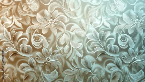 Etched glass pattern with floral ornaments, vintage decorative style.