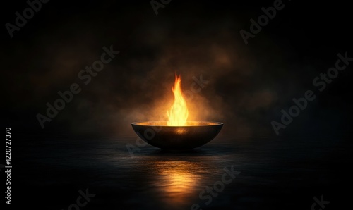 flames, fire, bowl, light, dark, glowing, heat, warmth, spiritual, ritual, energy, serene, abstract, peaceful, meditation, illumination, glow, symbolic, sacred, ceremony, timeless, contrast, artistic, mysterious, tranquil, minimal, dramatic, elegant, stillness, inspiration, worship, quiet, minimalistic, concept, mystical, powerful, vibrant, aethereal, illustration, ai, serenity, sharpened, solitude, atmosphere, traditional, flickering, beauty, calming