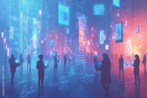 digital, marketplace, art, exchange, holographic, datum, glowing, piece, transaction, blue, tinted, abstract, floating, futuristic, ownership, commerce, scalable, geometric, shape, precision, illustration, clean, line, vector, print, landscape, background, desktop, wallpaper