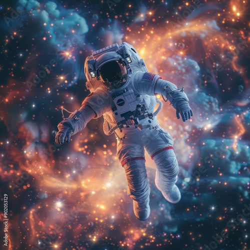 Ethereal Astronaut: Floating Amid Glowing Constellations and Digital Nebulae in Futuristic Space Exploration