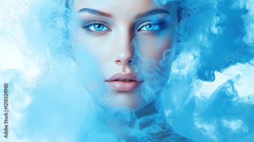 beauty, woman, eye, blue, smoke, make-up, fashion, photo, portrait, model, face, aethereal, cloud, mystique, glamour, cosmetic, coiffure, skin, look, expression, art, style, light, colours, effect, fantasy, dream, vision, concept, composition, aesthetic, creative, elegant, trendy, mag, advertising, campaign, studio, closeup, skincare, cosmetic, lens, mood, glow, female, girl, person, air, mist