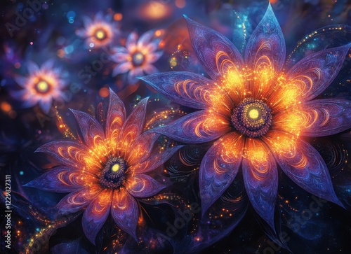 Ethereal Blossoms of Light: A Vivid Abstract Floral Design with Intricate Details and Glowing Colors in a Dreamlike Universe