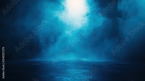 Ethereal Blue Mist with Glowing Light in Dark Atmosphere Background
