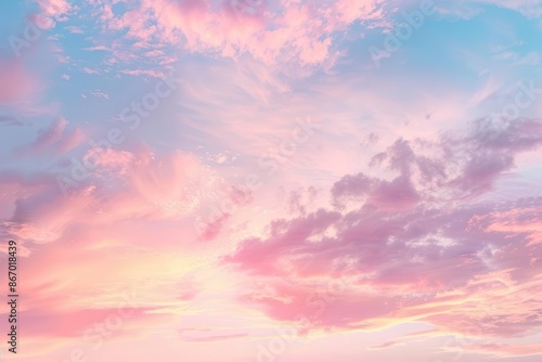 ethereal cotton candy sky with wispy pink clouds dreamy atmosphere soft pastel hues celestial background