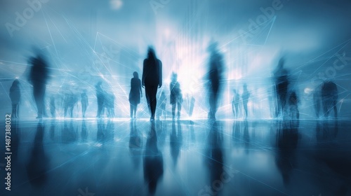crowd, silhouette, urban, futuristic, people, movement, technology, abstraction, light, shadow, reflections, blue, digital, haze, connection, atmosphere, energy, concept, mystery, design, style, illustration, visual, creativity, motion, background, space, scene, silhouette, line, dynamic, contrast, artistic, modern, imagination, inspiration, environment, city, action, identity, presence, interaction, innovation, visualisation, perspective
