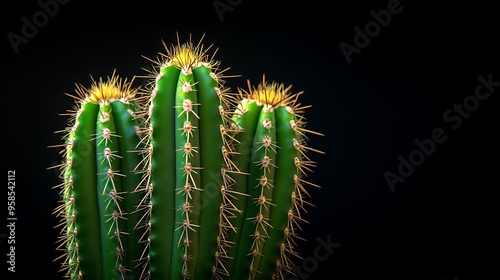 Ethereal Elegance: Dramatic Cactus with Thorns in Low-Key Lighting on Black Background