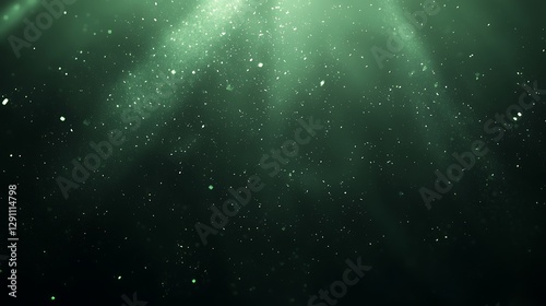 Ethereal Green Light Rays Illuminating Particles in Dark Background