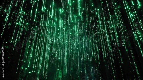 Ethereal Green Rays of Light Streaming Through a Dark Background, Creating a Mystical Aurora-Like Atmosphere in a Serene Setting