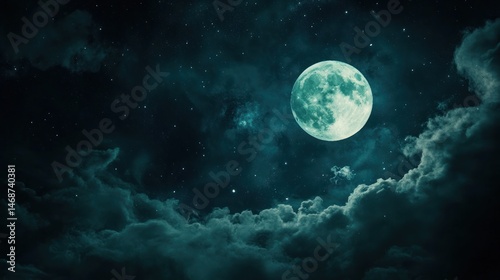 Ethereal moonlight shining through celestial clouds and glittering stars