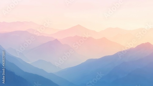 Ethereal Mountain Layers in a Serene Pastel Gradient Haze