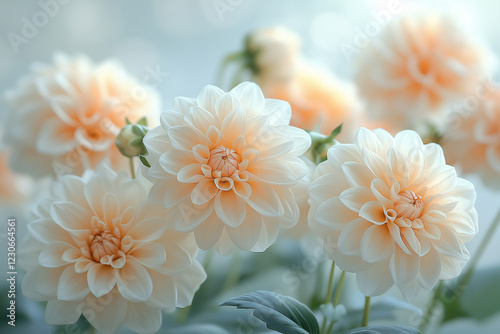Ethereal Pastel Scene Featuring Dahlias and Peonies with Soft Focus and Dreamy Lighting. Generative AI