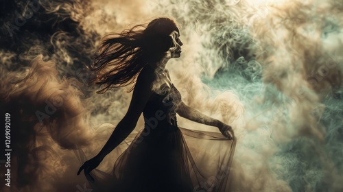 silhouette, woman, smoke, aethereal, flowing, fabric, dreamlike, atmosphere, colourful, portrait, beauty, art, fashion, motion, creativity, fantasy, elegance, mystery, serenity, style, expression, dramatic, light, shadow, background, calm, nature, inspiration, visual, surreal, artistic, scene, calmness, dance, movement, emotion, soft, aesthetic, captivating, enchanting, graceful, magical, portraiture, allure, ambience, dynamic, concept, photo
