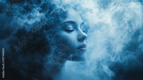 Ethereal woman in mist dreamy environment artistic portrait serenity