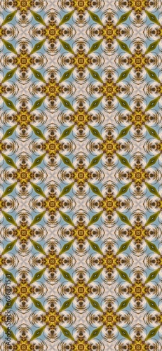Ethnic floral seamless pattern. Abstract kaleidoscope fabric design texture. Seamless geometric pattern in the style of the Middle Ages. Ethnic pattern. Abstract kaleidoscope fabric design texture or