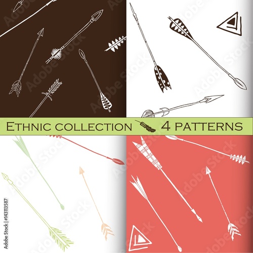 Ethnic seamless patterns collection, tribal vector patterns for design, boho patterns set