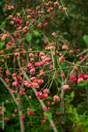 Euonymus europaeus european common spindle capsular ripening autumn fruits