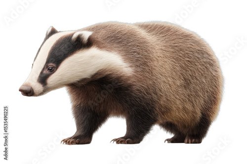 european, badger, side, view, portrait, animal, wildlife, mammal, fur, forest, nature, nocturnal, creature, omnivore, distinctive, stripes, wild, fauna, terrestrial, detailed, isolated, standing, bushy, brown, face